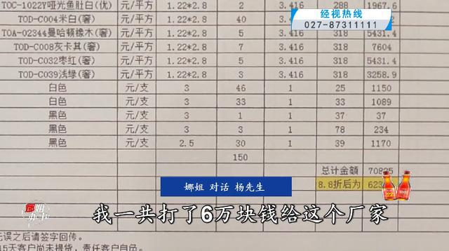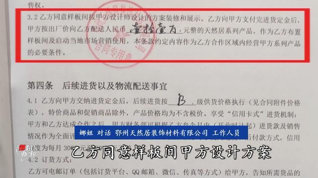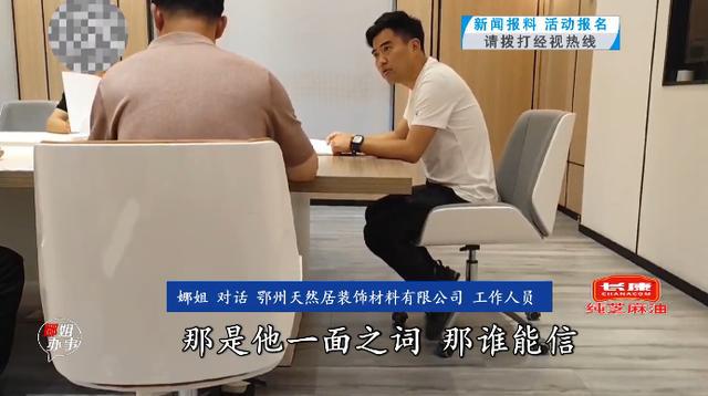 2024 年 6 月 6 日,经视直播记者陪同杨先生来到鄂州天然居装饰材料有限公司。公司工作人员称,当初,杨先生表示想做生意,还带了一个设计师过来,想享受公司的优惠,才签营销合同。