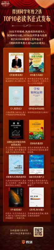 最后贴一个书单,是这次得到听书节投出的十本好书。当然未必是我心里的“十大”,我其实就挺喜欢没胜出的《传统的发明》。