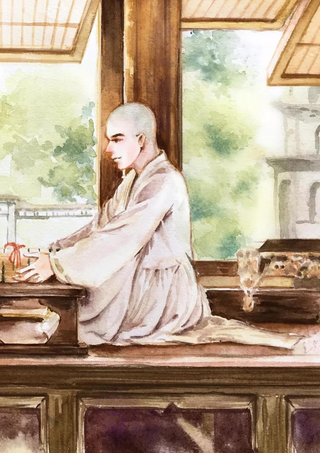 古风壁纸、头像插画「和尚」一缕情丝,几点离愁,又有多少俗事缠