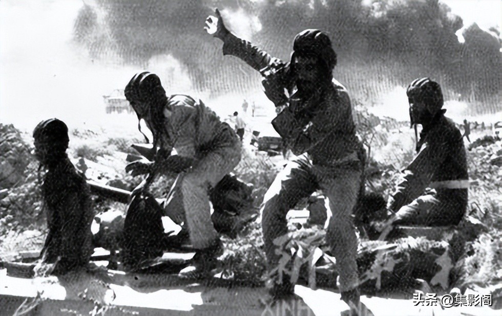 10月17日,伊朗空军轰炸卡隆河岸的伊拉克军事目标,伊拉克士兵从装甲车上跳下躲避。