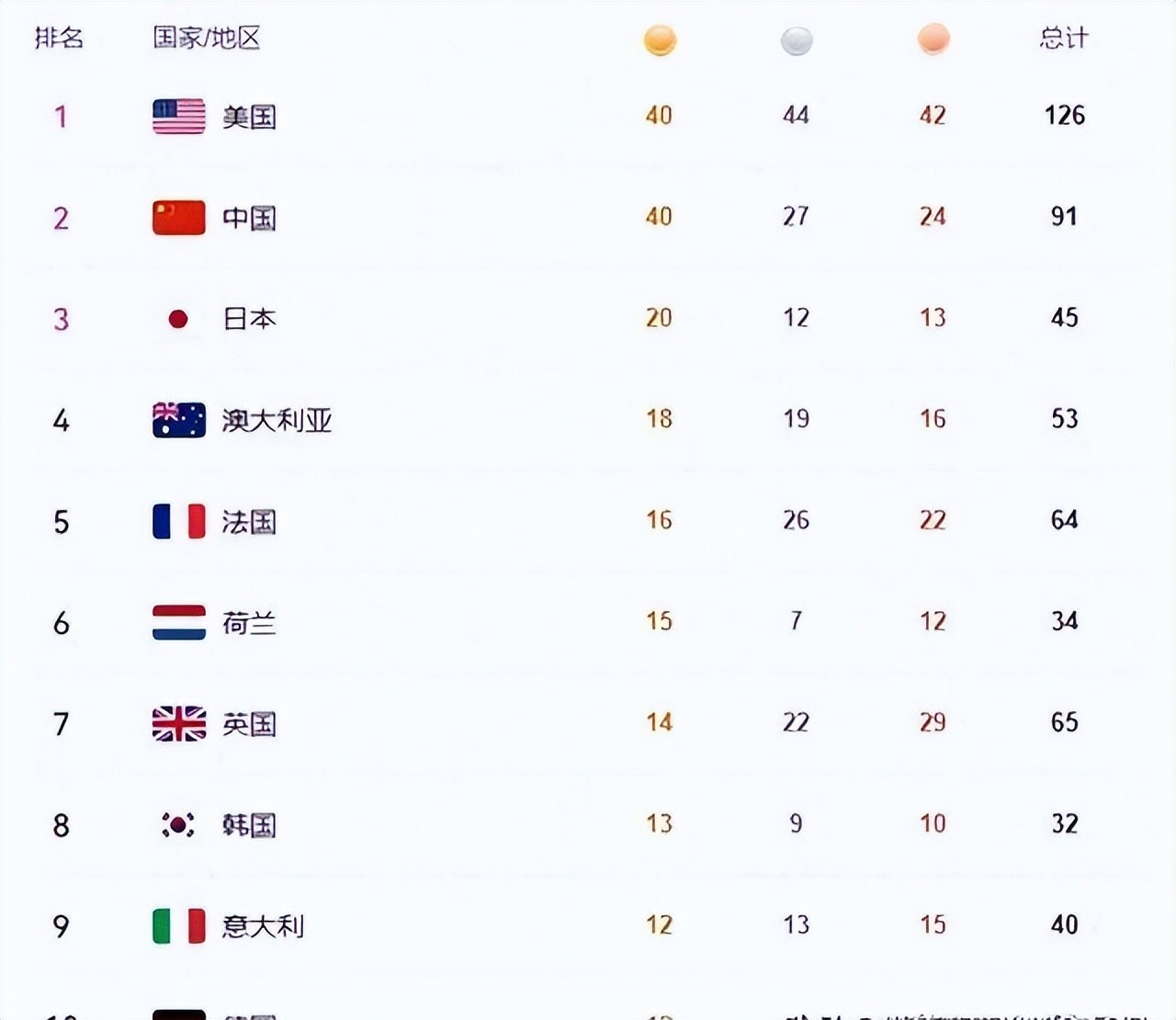 奥运金牌榜完整排名:中国44金,第2变回第1,美国并未登顶!