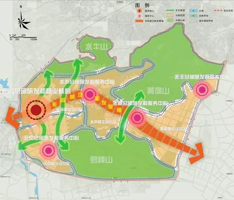 以长岭路为中轴,依山脉地势而建,城在山中、城中有林,“睡城”名副其实。长岭居规划建设用地39.5平方公里,未来居住人口规模将达到26万人。
