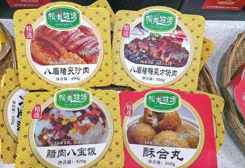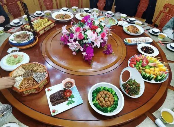 七彩家宴,以当地特有的食材,在原有宴席“老八盘”的基础上,不断创新,精益求精,研制而成寓意吉祥,色、香、味、形俱全的家宴美食。主要菜品有酱牦牛肉、蒜泥白肉、酸辣里脊、富贵肘子、千层羊脖、药膳葱花鸡、卤香八眉猪、桃仁拌柳花、养生枸杞苗、七彩面点、七彩拼盘等25道。