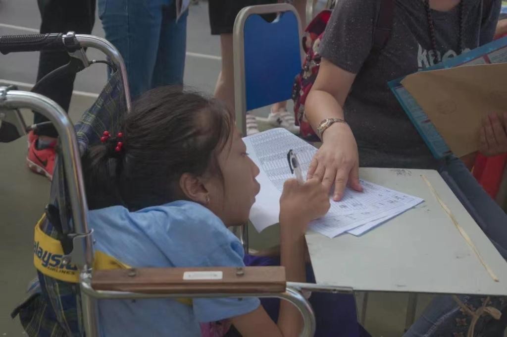 考场上徐瑞阳全神贯注,用自己仅能活动的两根手指奋笔疾书。
