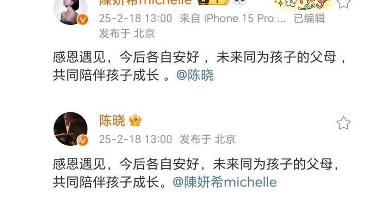 让我们以一颗平和的心,祝愿陈晓和陈妍希在未来的道路上一切顺利。也让我们自己学会在爱情中保持理性和独立,勇敢地追求属于自己的幸福和美好。