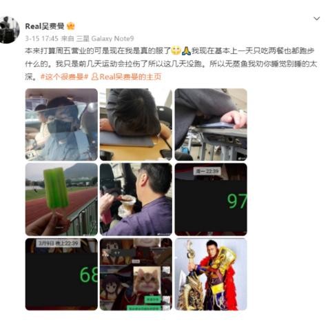 有一张照片中,吴费曼回应网友的调侃,风趣地表示“因为老人有老婆”。