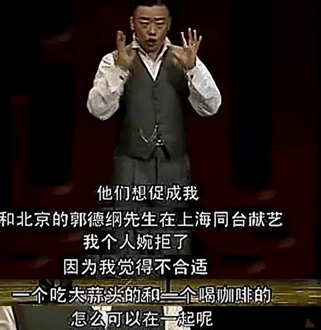 他曾在节目中把郭德纲贬为一个吃大蒜的人,高谈阔论自己才是那个喝咖啡的优雅绅士,自大到令人作呕。
