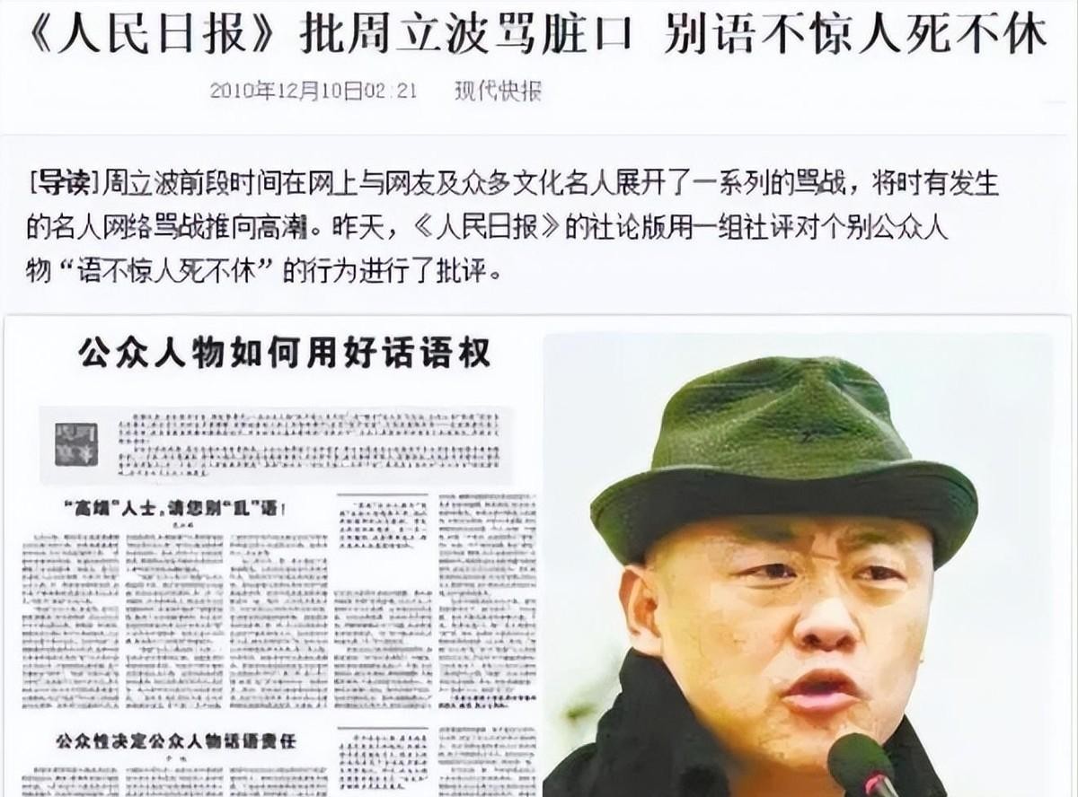 遗憾的是,当周立波渐渐出名后,他对两位恩师似乎就有些"过河拆桥"了。有一次,他在采访中大言不惭地说道:"我的老师,就是我自己。"这番话无疑是把恩师们的一片好心彻底忘到九霄云外。