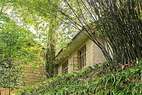 他住的村子环境清幽,三面都是树木茂密的山林,就连村人的家中,也会种上翠绿的竹子,生活的环境惬意自得。