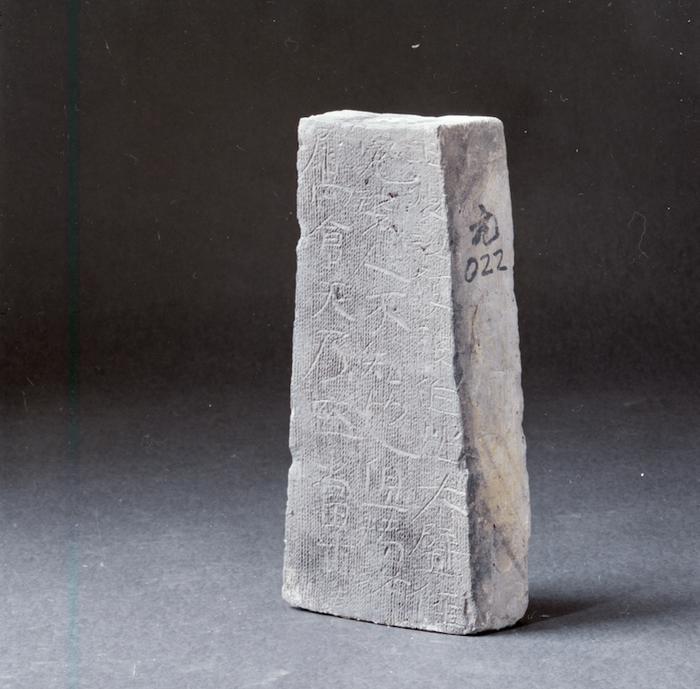 “苍天乃死”壁砖,刻划有“王复汝使我作此大壁,径冤我,人不知也。但抟汝属,仓天乃死,当博”二十六字,1976年安徽省亳州曹操宗族墓地出土。/中国国家博物馆