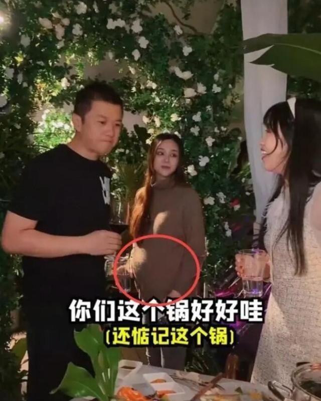 值得一提的是,在李亚鹏与众人敬酒期间,旁边那位女子也默然相随。该女子一头长发飘飘然,欢欢散落肩头。她着一身棕色长衫,下面搭配紧身长裤。只觉面容娇艳,一双大眼睛明亮闪烁,眉眼盈盈处,尽显柔婉风韵。不曾料想,比容颜更抢镜的,是她的肚子;只见其小腹凸起明显,已然身怀六甲。