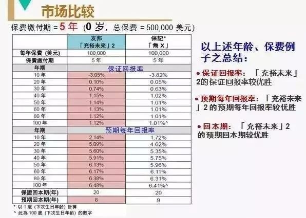 2016 年,在保诚公司的同类储蓄产品“隽升”两次降低预期之时,“充裕未来 2”提升保证收益率着实让人惊喜!总体而言,“充裕未来 2”的长期保证收益由原本的 1.00%提高至 1.14%,这表明友邦对美元储蓄保证收益的达成有了更高的把握。