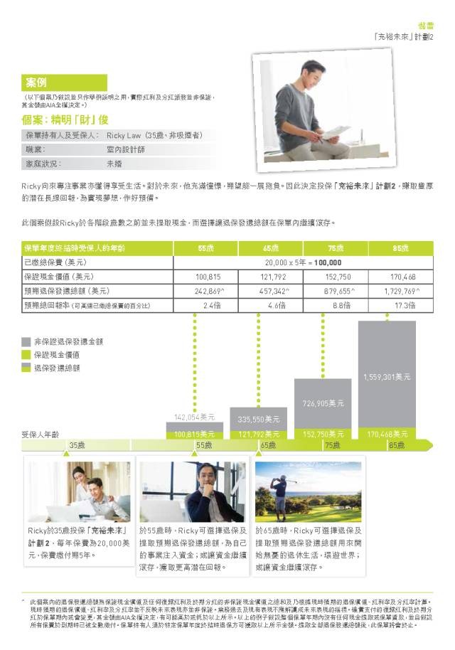 Ricky 向来专注于事业,也懂得享受生活。对于未来,他满怀憧憬,期望能够一展宏图。所以他决定投保“充裕未来”计划 2,获取丰厚的潜在长期回报,为实现自己的梦想做好准备。