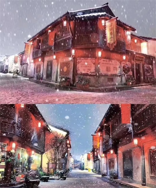 屋顶积雪和湖面倒影真是让人大饱眼福,很适合汉服写真哦。