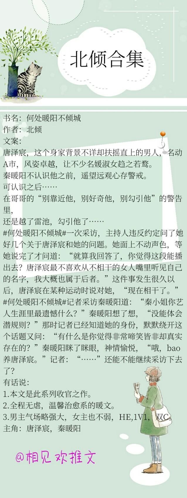 《何处暖阳不倾城》这本书的女主暖阳真的是个特别纯真美好的女孩子,才能让唐泽宸那么爱她。