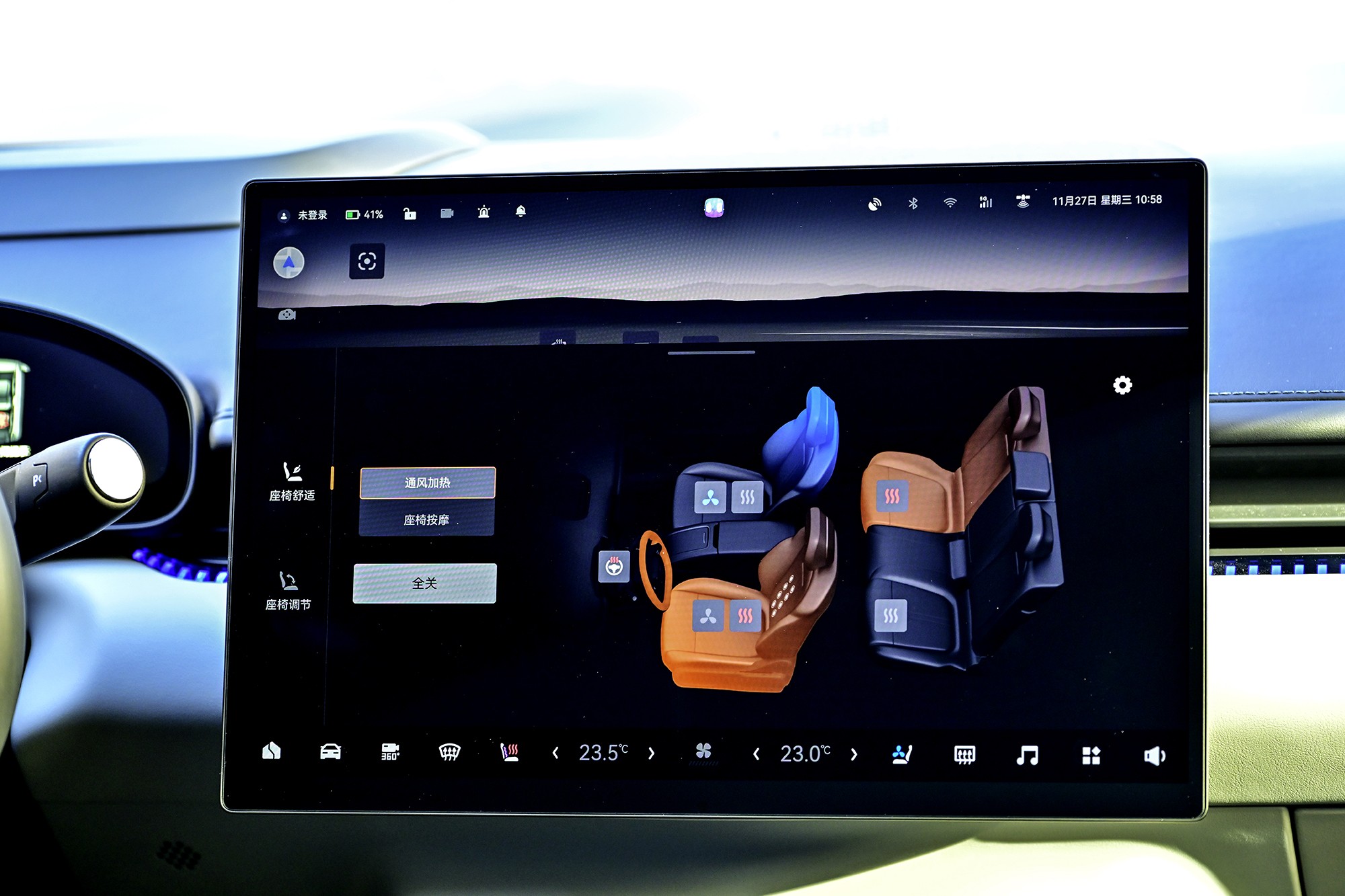 主副驾的通风/加热/按摩/电动记忆,以及后排座椅电加热和靠背电动调节,20.99万元的最低配上全都带。不过黛绿的内饰配色是25款车型上新增加的。