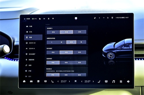 极氪007开起来没有001那么冲,属于既能满足你释放激情,又能满足全家舒适出行的产品。特别是它的初段电门,调的又没有那么贼。再加上前后四点位路感液压衬套,舒适模式下,柔和着踩并不会让乘客出现晕车感。