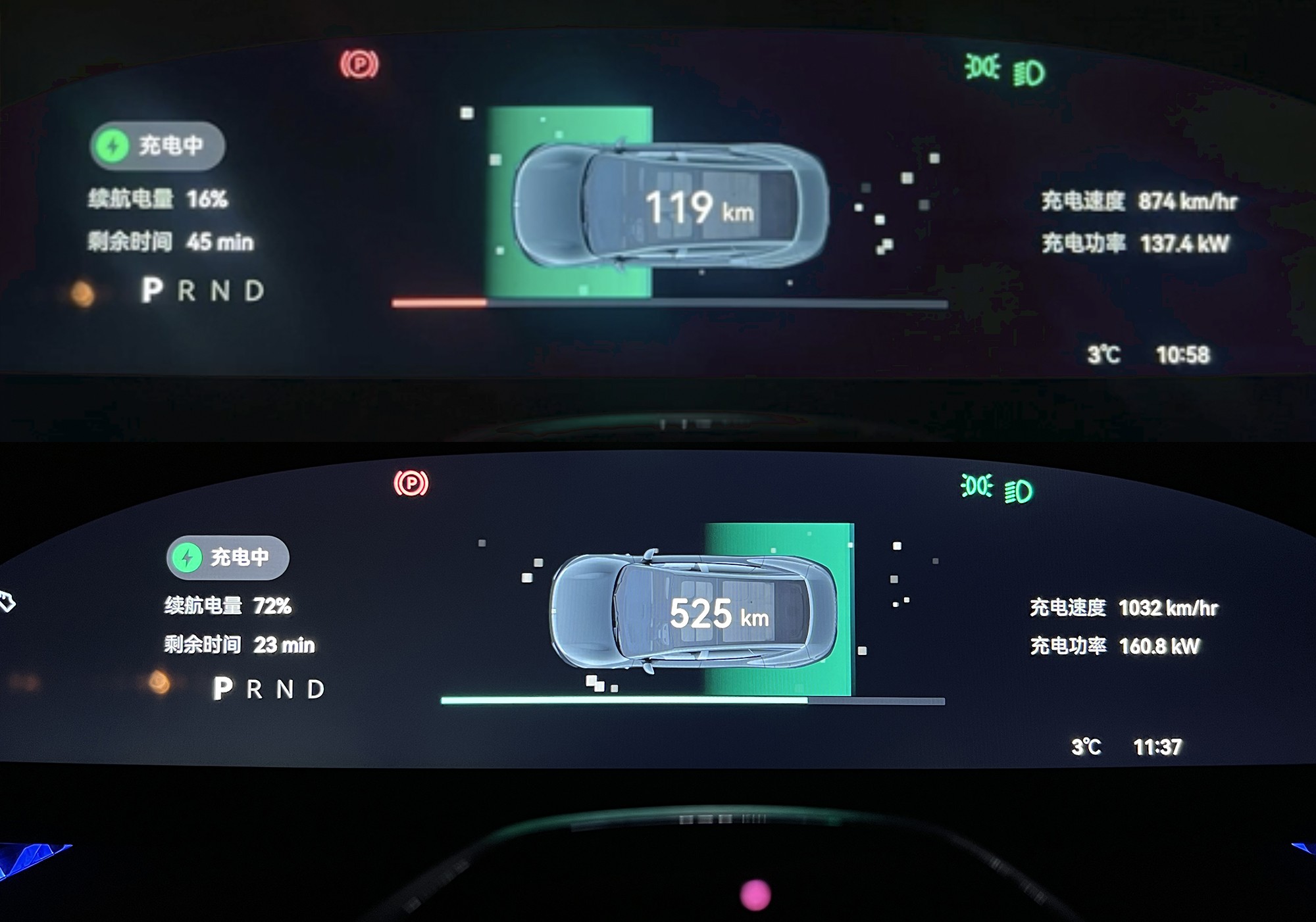 100kWh的三元锂电池,官宣10%充到80%需要15分钟。我们也进行了实测,用250kW的公共直流快充桩,从16%开始充电,充了39分钟,充到了72%。
