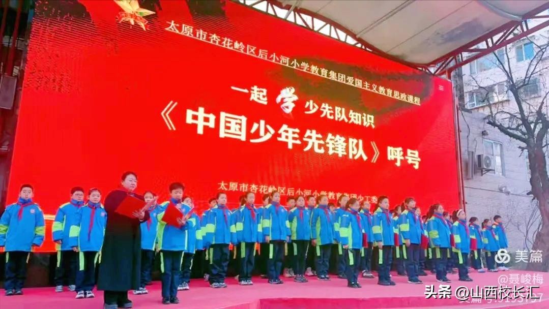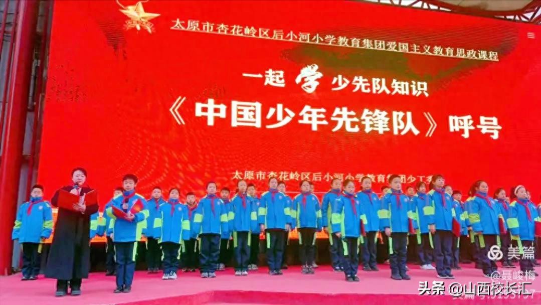 近日,太原杏花岭区后小河小学教育集团开展爱国主义教育课程“百节思政课,千人大学习”:一起学习“少先队知识”第十讲《中国少年先锋队》的呼号。在优秀共产党员、五(1)中队辅导员赵晓霞老师的带领下进行了学习。