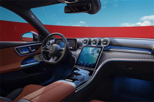 全新奔驰C级的内饰设计同样延续了S级的风格,但更强调运动感与数字化的结合。内部空间采用了重新布局的仪表台,分为上下两个区域,上层搭载扁圆形炫光出风口,灵感来源于喷气飞机的引擎,下层则延伸至中控台,营造出动感视觉效果。车内搭载了12.3英寸的数字仪表盘和11.9英寸的中控触摸屏,几乎取代了所有实体按键,提供了高度数字化的体验。中控屏和仪表台向驾驶者略微倾斜,增强了运动操控感。此外,第二代MBUX智能人机交互系统的引入,使得新C级在智能化和用户交互方面更进一步,整体内饰设计在保持奔驰一贯的豪华感的同时,也展现了现代科技与运动风格的融合。