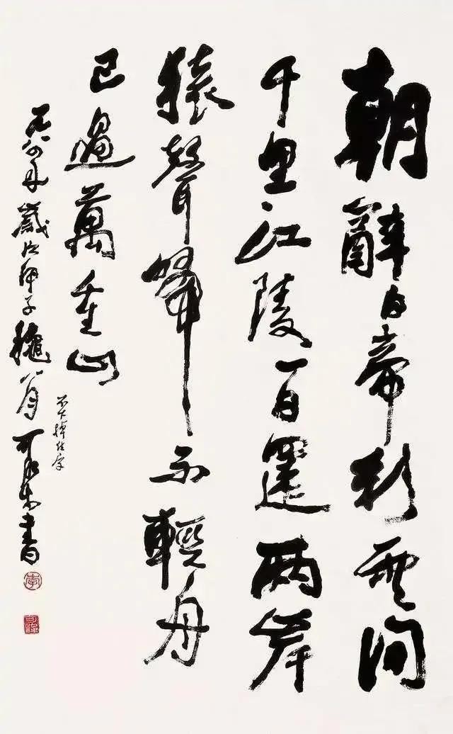 从“一万年太久,只争朝夕”的落款可知此作写于己巳年(1989年),正是李可染先生离世那年,属于其晚年作品,作品通篇给人以沉重凝练、宽博大度之感,极富意态、意趣。