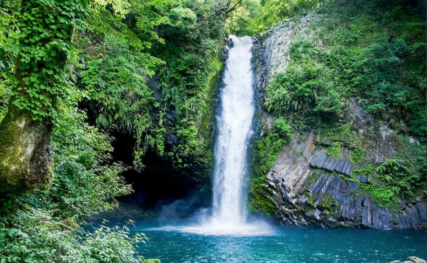某天有位男人在瀑布旁边休息时,被无数的丝线缠住脚。他感到有股力量顺着丝线想把自己拽到水里。男人为了自救,将丝线绑到了附近的木桩上,但是那股力量太大了,连木桩都一点一点被拖进了水里。从此,乡里人都因为惧怕女郎蜘蛛而不敢靠近这片瀑布。