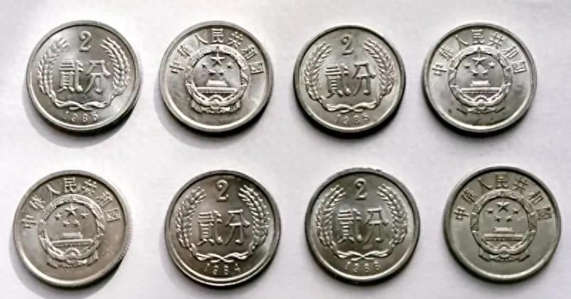 2分硬币作为我国的绝版面值个人认为收藏价值还是很高的,第五套人民币就没有发行过2元、2角、2分的面额,以现在的经济水平后期发行的可能性也不大!2分硬币发行于1956年材质为铝镁合金,自1956年发行至2000年结束,1992年至2000年部分年份没有公开发行,少部分年份装帧中国硬币年册,正面图案为:以中华人民共和国国徽为主景,背面图案为:以麦穗为主景中间写有面额以及下方发行年号字样。直径为21mm,厚度为1.6mm。具体请看下图所示!