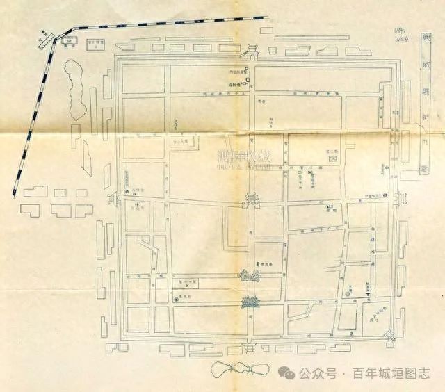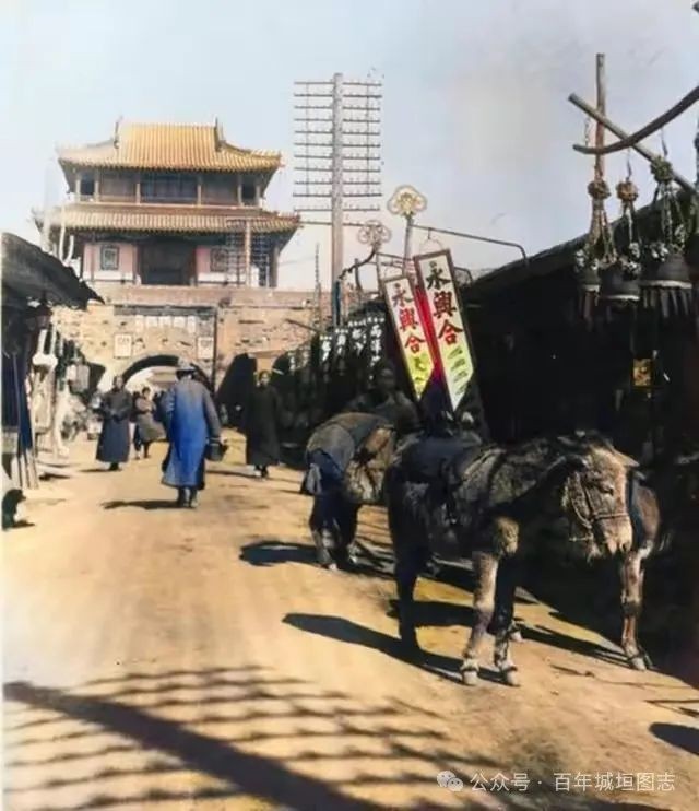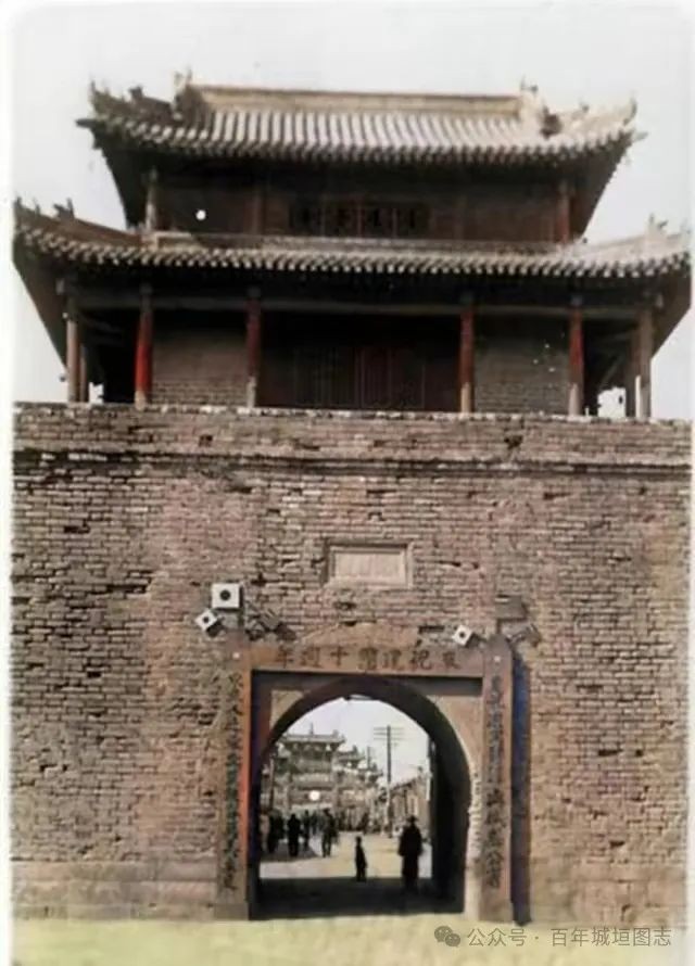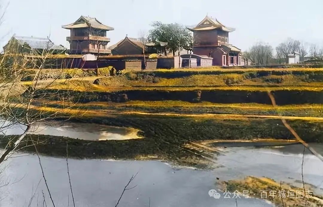 伪满时期的县城:鼓楼,城墙,市街。