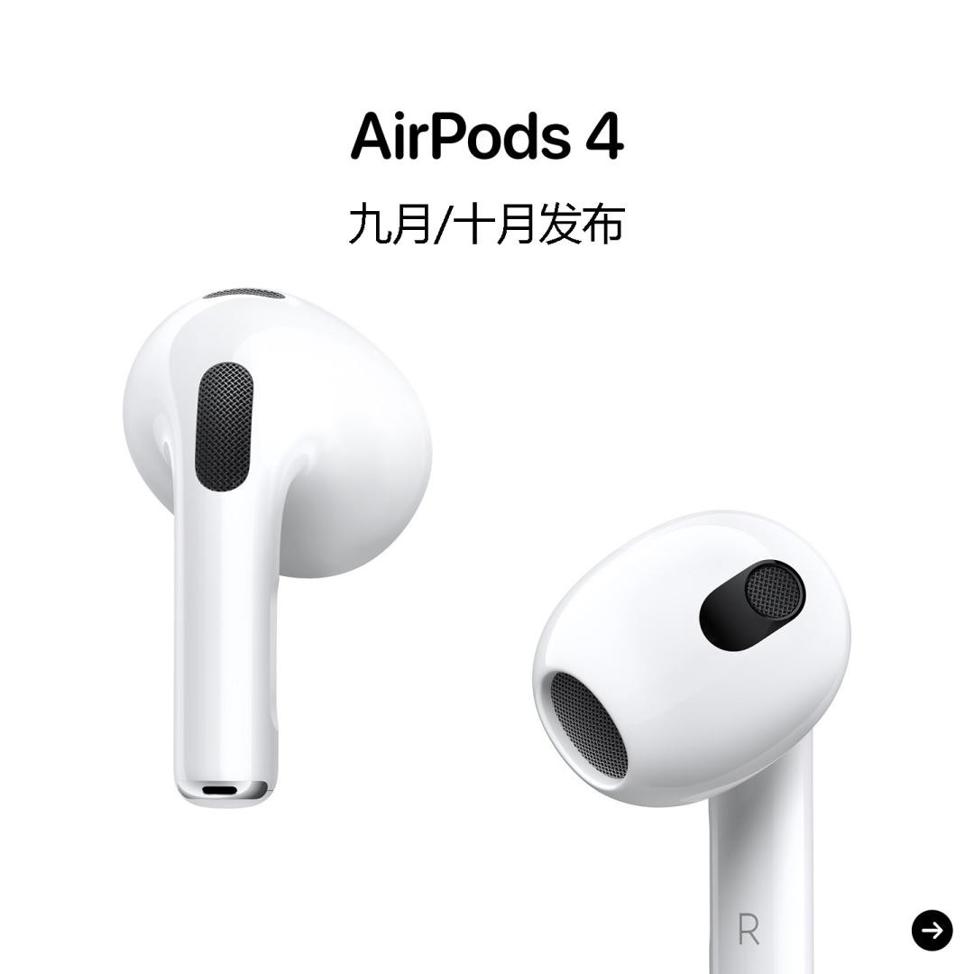 AirPods 4 将于九月或十月发布。这款无线耳机在音质、降噪和电池续航方面都有所提升,为用户提供更好的音乐和通话体验。