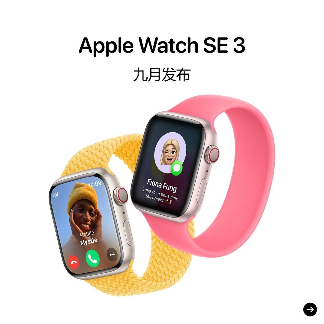 Apple Watch SE 3 将在九月发布。这款手表定位于入门级市场,具备基本的健康监测功能和多种颜色选择,适合年轻用户和预算有限的消费者。