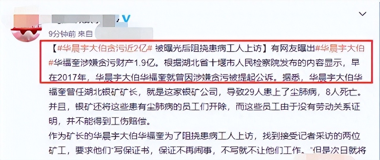华晨宇是借助家族的力量,踩着无辜村民的生命健康上位的。