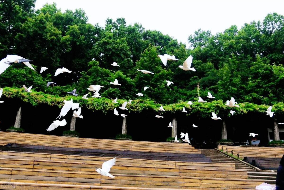 2.音乐台:中山陵下来后对面就是音乐台,民国建筑大师杨廷宝设计,设计精美、大气,这座深林里的舞台现在还在发挥演出作用。音乐台喂鸽子深受小朋友友们喜欢,鸽子不怕人,可以和鸽子合影,群鸽飞舞的场景特别美丽。