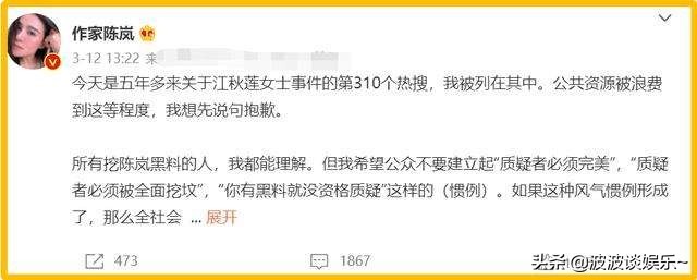每个人都不完美,不完美有瑕疵的人,也有正当权利,如果以完美作为资格,作家陈岚根本没有发言的资格。