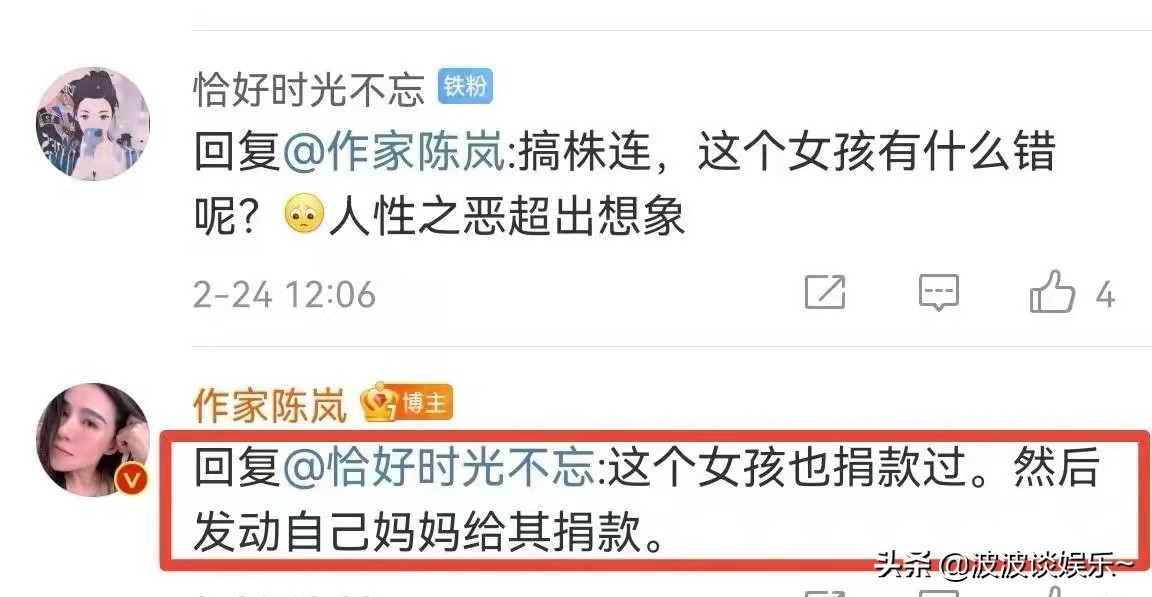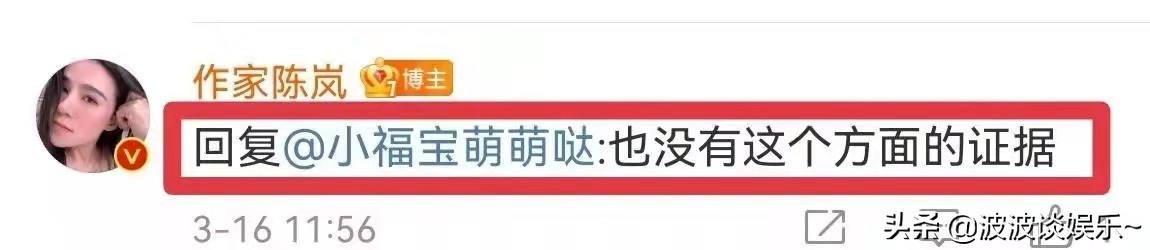 在3月17日作家陈岚又复述了一遍这个偷梁换柱的故事,并且在评论区“好意”的提醒网友: