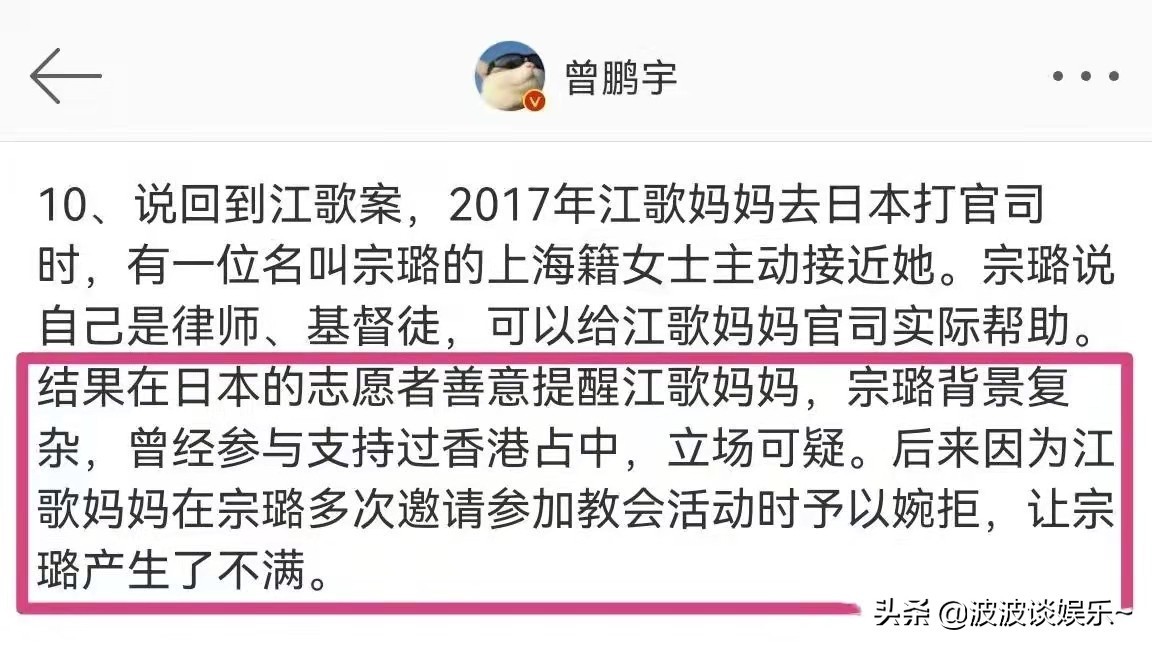 后来,有在日本的志愿者善意提醒江歌妈妈,宗女士背景复杂,立场可疑,曾经参加过不法活动。