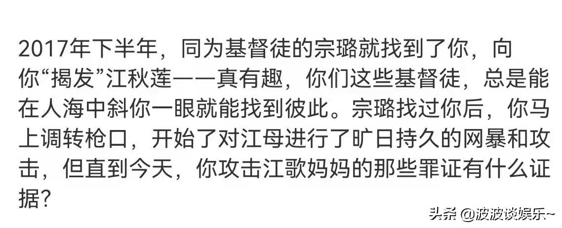 宗女士曾多次邀请江歌妈妈参加教会活动,都被江歌妈妈婉拒,这让宗女士产生了不满。这一点倒是与作家陈岚文中说的:“宗某说,她一直试图用宗教帮助江秋莲能够从痛苦中逐渐走出来”吻合了。
