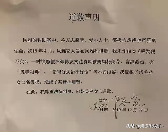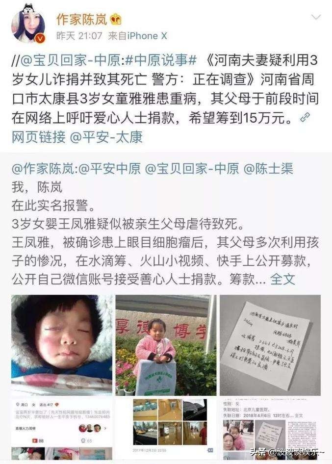 作家陈岚把猜测当做事实,不仅实名举报,在警方调查结果没有出现之前,还用“治得了病治不了命”这样的言论,攻击一位刚死了女儿的母亲,这已经超出正常质疑。小凤雅的母亲起诉了她,她败诉,不得不公开道歉。