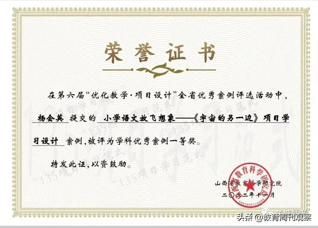 坚持科研兴校,以丰硕成果提升教育教学质量。一方面,认真抓好课题研究,多出成果。2022年东关小学数学教研组分别荣获山西省第八届基础教育“三优工程”优秀教研团队二等奖和忻州市“三优工程”优秀教研团队一等奖,教师在忻州市“三优工程”评选活动中喜获佳绩,斩获7个奖项!崔淑英校长、王艳玲和武娜老师均获“三优工程”优秀案例一等奖,侯燕老师获“三优工程”优秀论文二等奖,曲丽霞、吴变莲、孙锐老师均获“三优工程”优质课三等奖。在山西省教学设计、教学论文评选活动中,连爱平、吴丹等7位老师分别获得了一、二等奖;杨晓霞老师荣获山西省首届中小学优秀试卷及优秀试题评选活动二等奖。另一方面,抓好教育科研,她指导青年教师快速成长。在她的引领和指导下,王艳玲老师被评为“忻州市教学能手”,陈欣老师被评为“宁武县教学能手”,冯红梅、吴芳、张利平、王俊华分别被评为“模范班主任”和“模范教师”,毕鹏程被评为“先进教育工作者”,李文艳和王丽萍荣获“鑫英”教学奖。