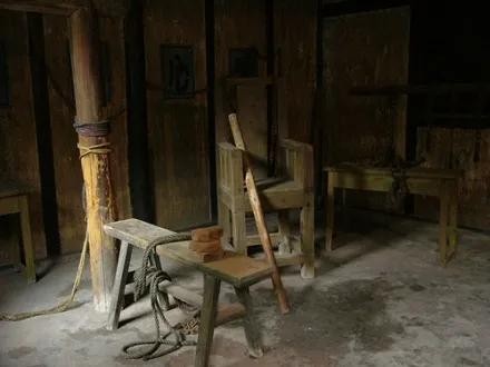 当年特务们使用刑具“老虎凳”摧残革命志士