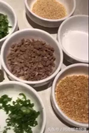 接下来继续煮粥神操作...10块钱一人份的调料拿来了N多牛肉粒、葱花、盐等等▼
