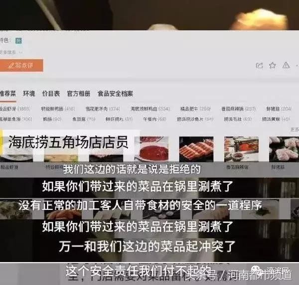 这条测评一下子就火了,但火锅店自带菜品引起食品安全争议,海底捞不得不紧急叫停“自带菜品”。