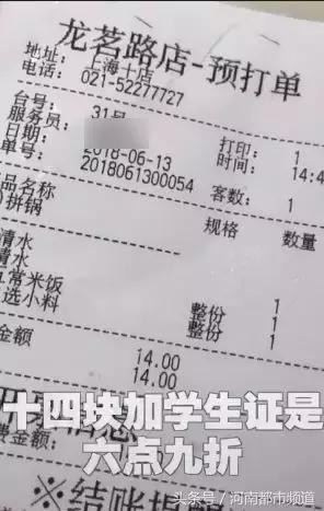 他们买单时,拿出了学生证。于是又在14块钱的基础上打了6.9折,所以一共只花了9块钱!