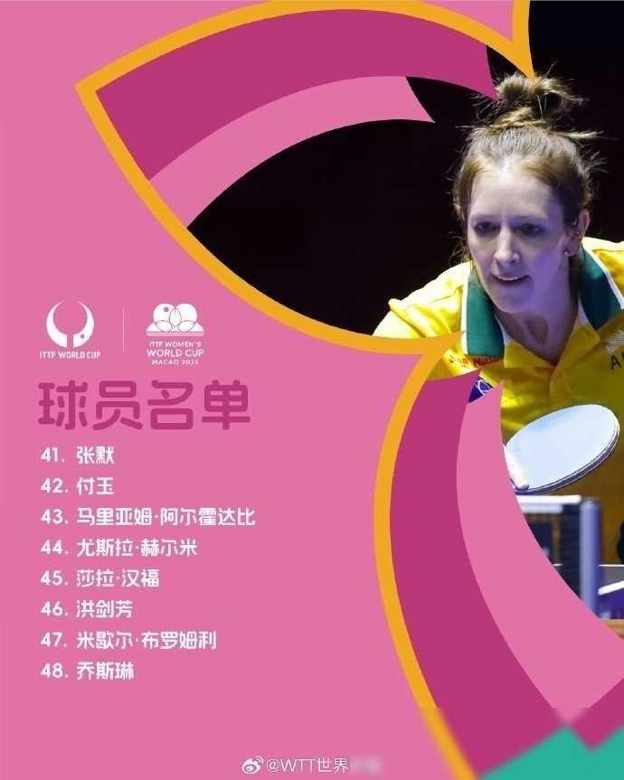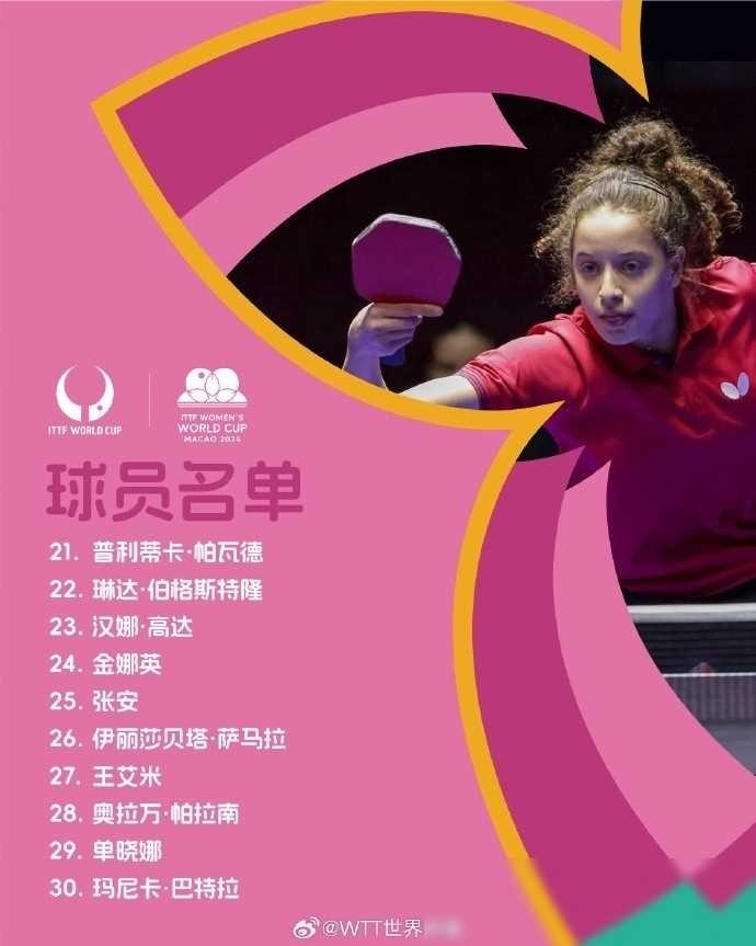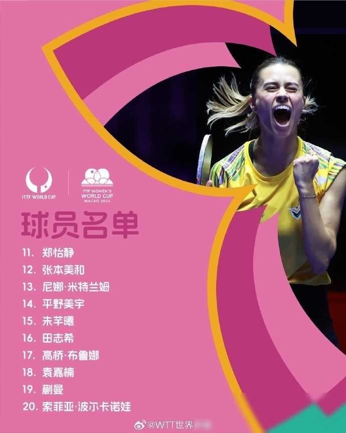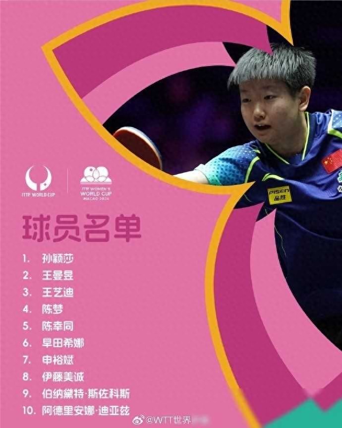 女子乒乓球世界杯参赛名单:卫冕冠军陈梦领衔,孙颖莎在列