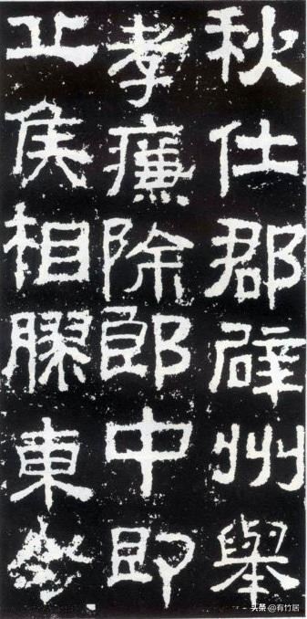 《衡方碑》全称《汉故卫尉卿衡府君之碑》,东汉建宁元年(公元168年)九月立,是衡方的门生朱登等为其所立的颂德碑,是汉代隶书成熟时期的作品。《衡方碑》用笔极为有力,笔画丰润,在转折和撇、捺处尤见功力,形成外方内圆的效果。其结体方正,波、磔、撇、捺皆不张扬外露,字体方整严峻,有下紧上松之感。整篇章法紧凑,字与字之间、行与行之间留白很少,但又毫无局促壅塞之感。此碑对后世的影响很大,杨守敬说它“古健丰腴,北齐人书多从此出,当不在《华山碑》之下”。
