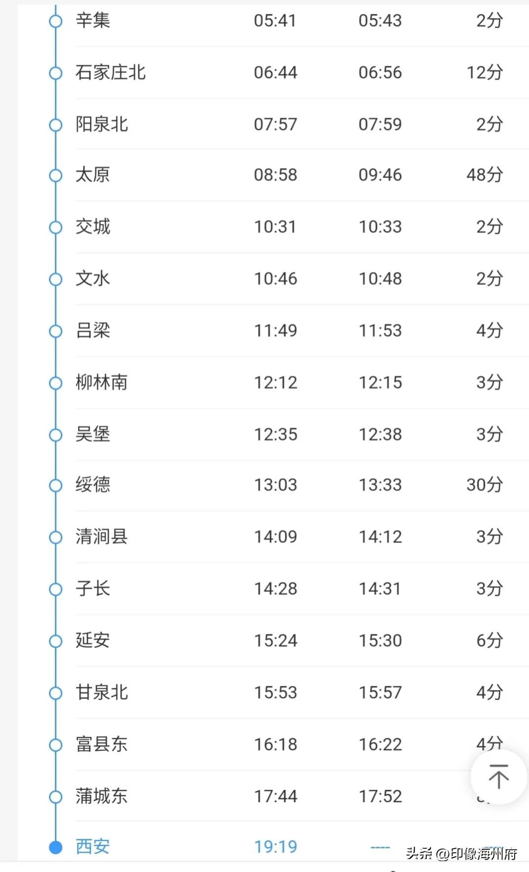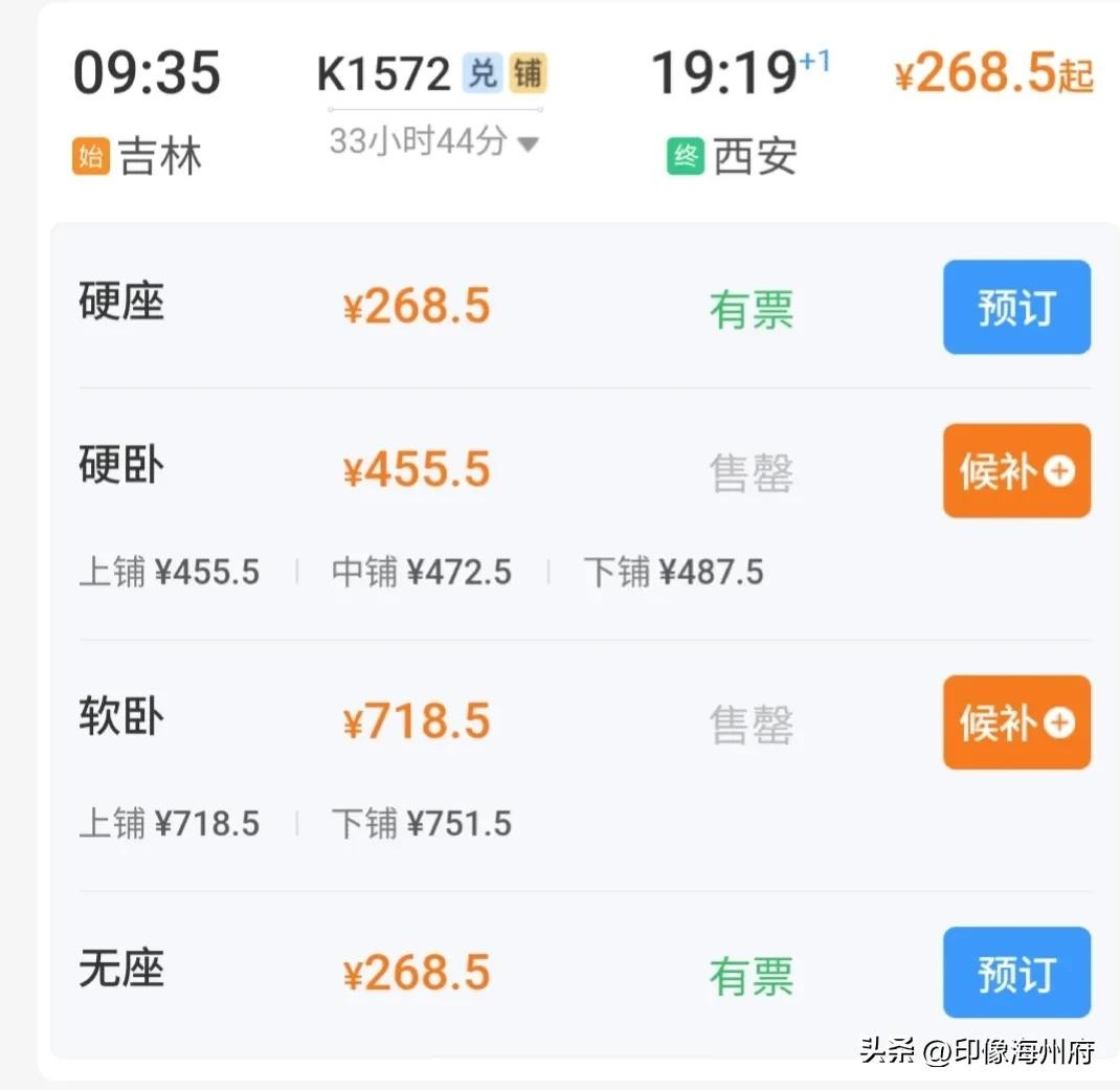 乘坐K1572次吉林直达西安:用时33小时44分钟,太原站停48分钟