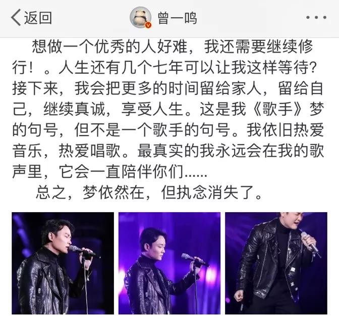 曾一鸣虽然在大众平台鲜少露面,但是对参加《歌手》的执念却未曾放下。
