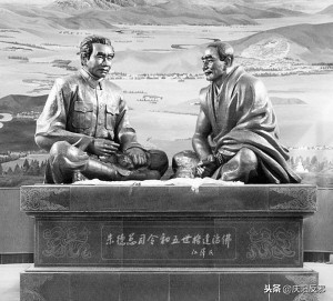 朱德总司令和五世格达活佛纪念馆内的塑像。 资料图片