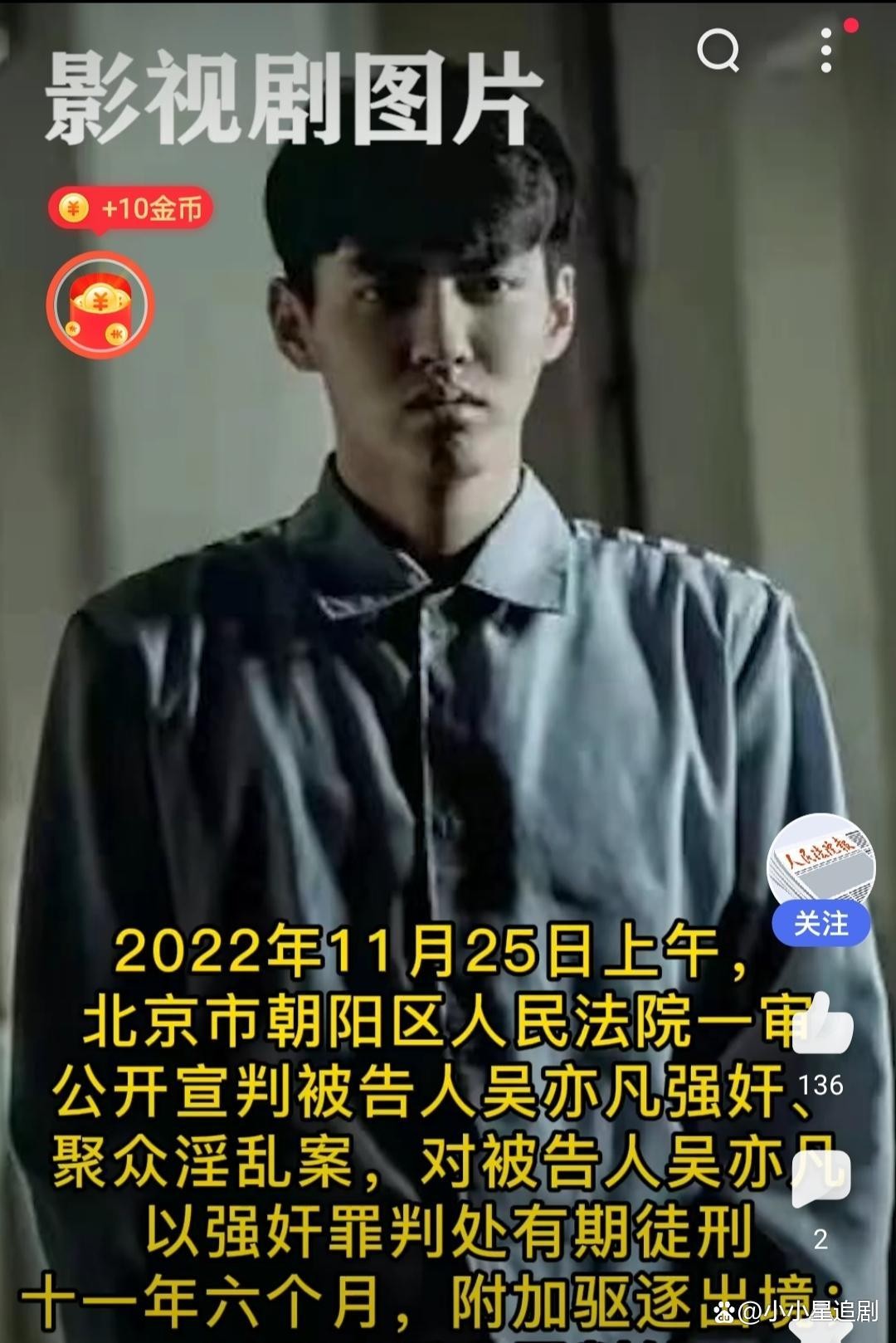 11月25日上午,北京市朝阳区人民法院一审公开宣判被告人吴亦凡强奸、聚众淫乱案,对被告人吴亦凡数罪并罚,决定执行有期徒刑十三年,附加驱逐出境。