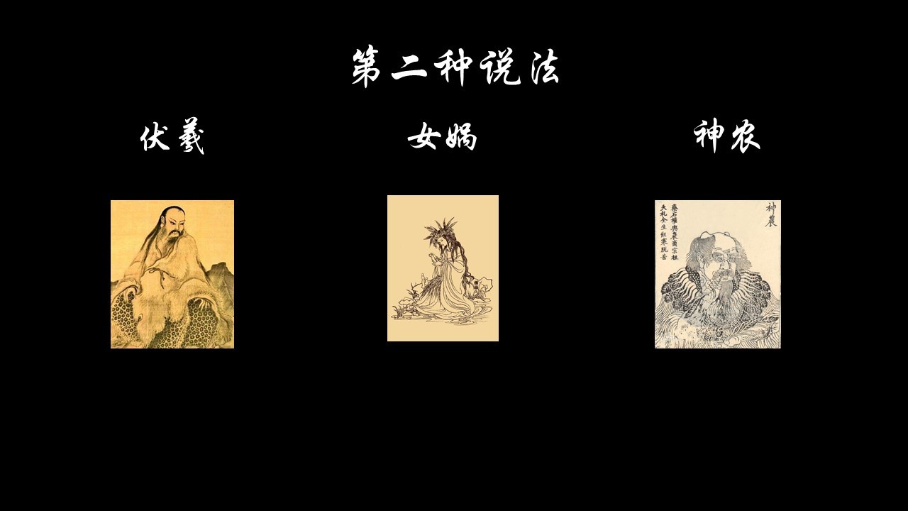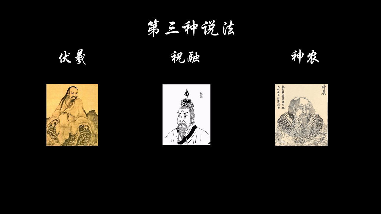 汉代以后,人们倾向于第六种说法:伏羲、神农、黄帝