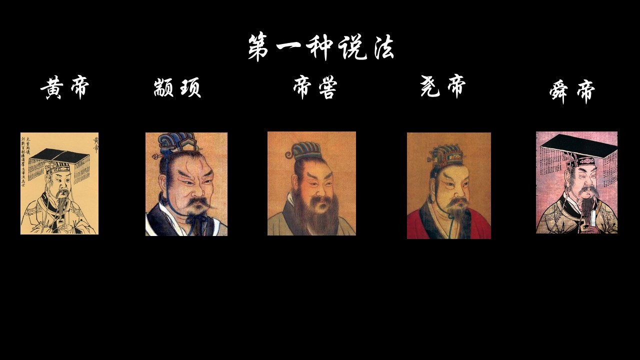 第一种说法是:黄帝、颛顼、帝喾、尧、舜;